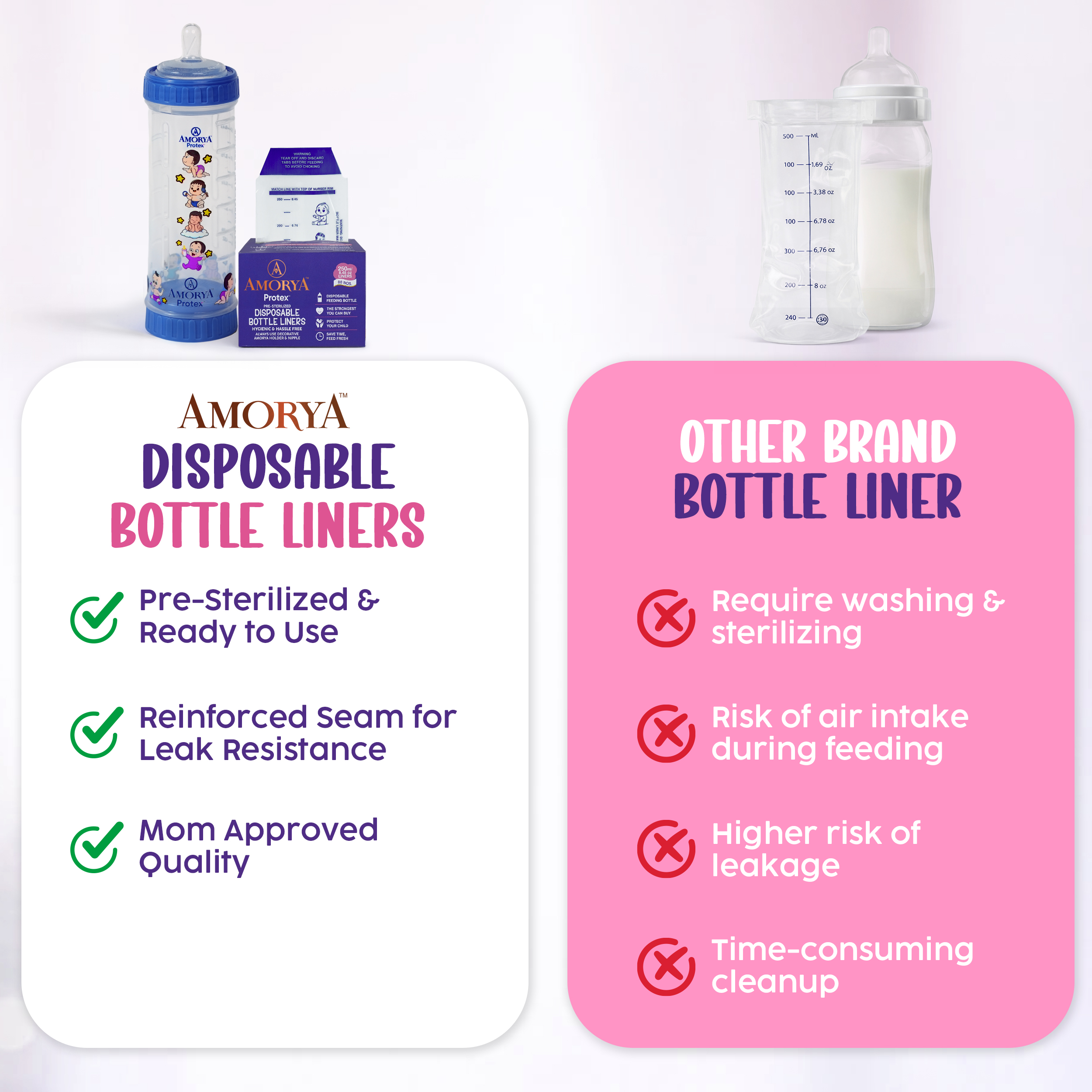 - Pre-Sterilized & Hygienic: Ready-To-Use Disposable Liners Designed for Safe and Convenient Feeding.